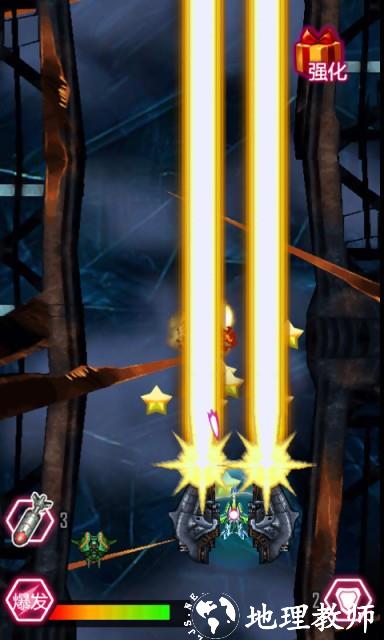 1. 通过虚拟摇杆和按键控制战机飞行、射击以及释放技能。