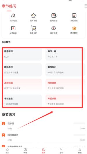 1、章节练习功能:严格依据国家计算机一级考试大纲,将全部练习题系统划分至对应知识章节。