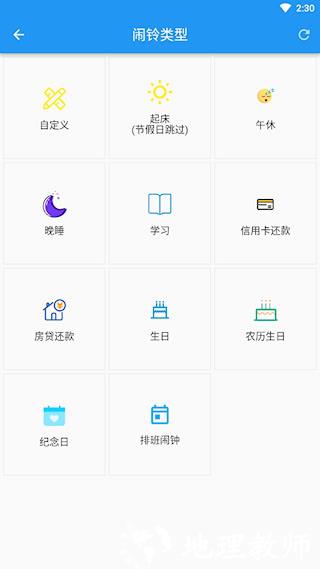 3、 进入主界面后即可开始创建所需的特定类型闹钟提醒