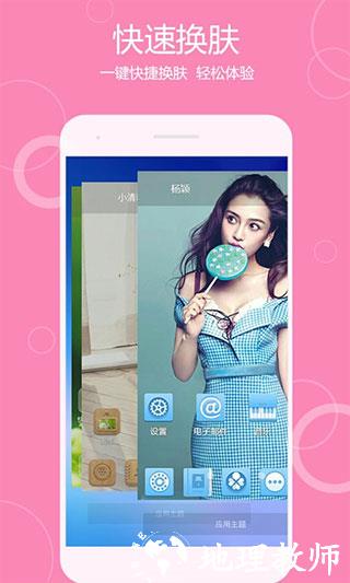 2、秀出肤色:秀桌面横向滚动式卡片效果,带给你惊人的视觉盛宴;一键换肤滑动快速展现各类主题,桌面美化可随心选择喜欢的图标,展示自己的天性!