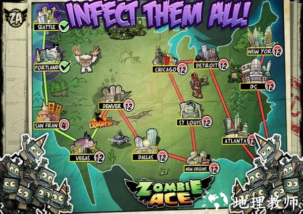 3. 城市感染:玩家需要将僵尸运输到各个城市进行感染,每个城市都有一个感染指数,距离越远的城市感染指数越高,难度也越大。