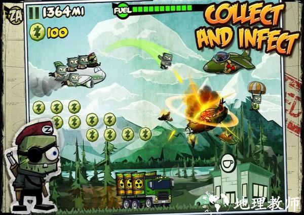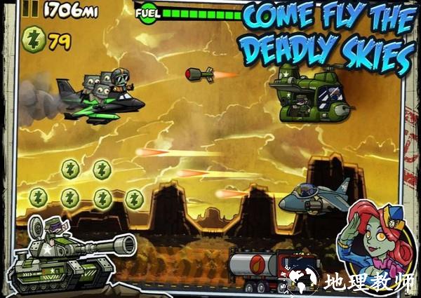 4. 升级系统:玩家可以升级僵尸飞行员、飞机、引擎和燃料,以提升飞行和战斗能力。