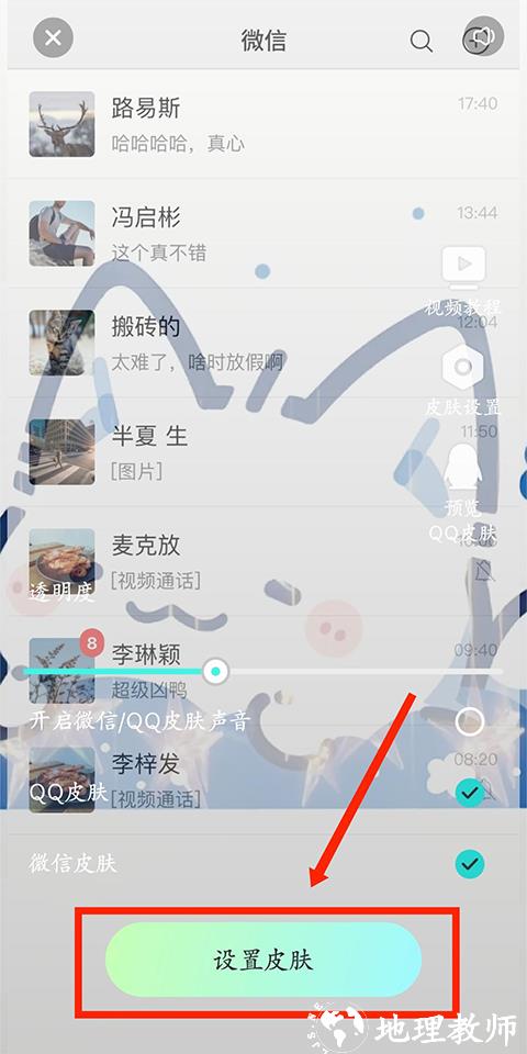 3、点击页面中的【设置皮肤】按钮,就能完成设置,让微信和 QQ 瞬间展现个性。