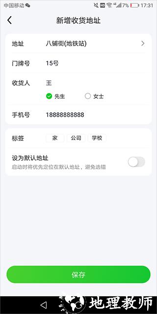 4、按提示填写收件人、电话、详细地址等信息,确认无误后点击 “保存”。