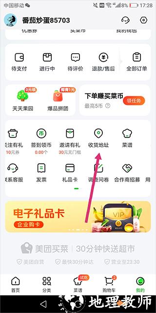 2、在个人中心找到 “收货地址” 选项并点击,进入地址管理界面。