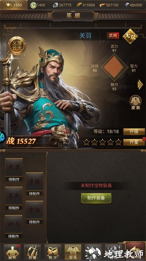 藏宝阁(府邸10级解锁)可以制作许多装备供英雄穿戴,同时可以为装备进行突破、洗炼、强化。