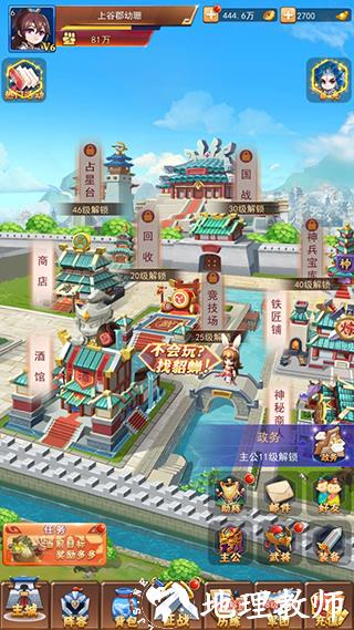 而主城界面如下,就是你作为主公所拥有的城池,有商店、占星台、竞技场等等,有些场所有等级限制,需要升级方可进入