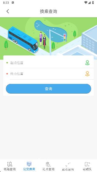 4、在换乘查询页面输入出行起点与终点,系统会自动规划合适的换乘路线。