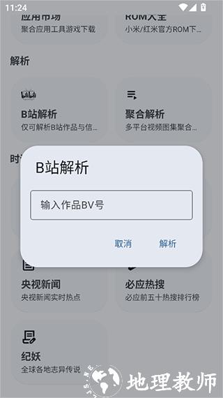 1、进入 APP 的功能或工具界面,找到并点击符合需求的工具,例如 B 站视频解析功能,即可开展对应操作。