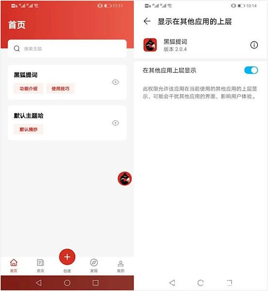 2、通过点击标题栏旁边的可视化图标激活悬浮显示功能,按照系统指引开启悬浮窗权限。此项授权是确保台词能在其他程序界面正常显示的必要前提。