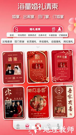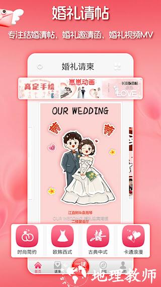 1、下载安装后点击进入婚礼请柬APP,首页提供了丰富的请柬风格