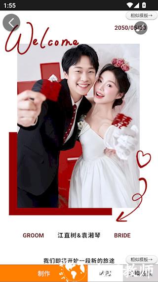 4、支持创建动态婚礼视频相册,可将珍贵影像素材串联成篇。提供多种转场特效与滤镜选项,搭配背景音乐生成感人短片。视频既可用于请柬内嵌预览,亦适合婚礼现场循环播放。