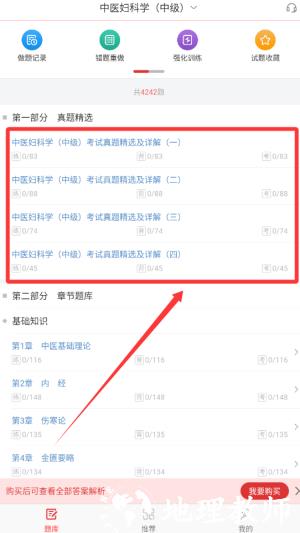 2、题库练习功能:包含章节练习、随机组题、历年真题与模拟预测多种模式,满足各阶段刷题需求,提升解题能力。