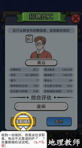 6、会随机收到员工的简历,如果不满意的话可以点击重新随机更换人选。