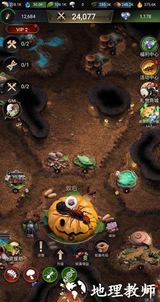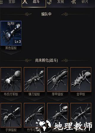 1、训练与搭配、训练更多高级兵蚁,搭配对应兵种的特化蚁,孵化兵蚁是提升战力最快的方式之一。