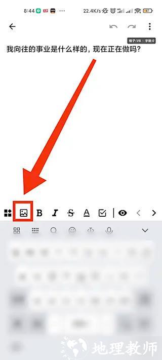 2、进入内容编辑状态后,轻触界面左下方的图片插入按钮。