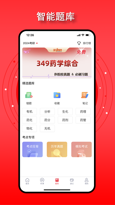 金榜君药学考研app提供了全面的药学考研资讯,包括各大高校的招生简章、专业目录、历年真题等,让用户能够随时了解最新的考试动态和信息。同时,软件还提供了药学考研的复习资料,包括各科目的重点知识点、习题解析、模拟试题等,帮助用户系统地学习和巩固药学知识。