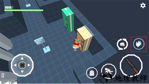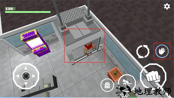 2、走到电梯里,再按住游戏右边的小手按钮来去到外面。