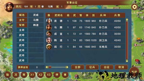 3、需合理搭配主公、武将与谋士:武将领军出征、平定战事,文臣治理内政、献上良策;