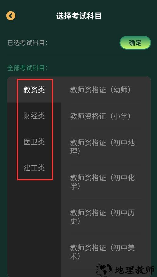 2、根据个人需求选择考试类型与科目,系统将自动匹配对应学习资源。