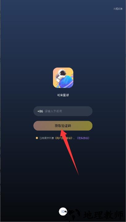 2、在登录界面输入手机号,勾选同意相关协议后点击获取验证码并输入完成登录。