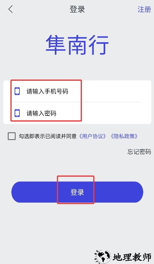 4、返回登录页输入手机号与密码,验证通过后即可成功登录隼南行平台。