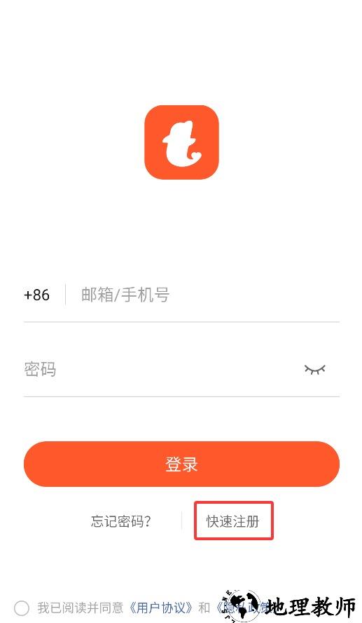 2、在登录页面下方找到快速注册按钮并点击,即可跳转至账号注册页面。