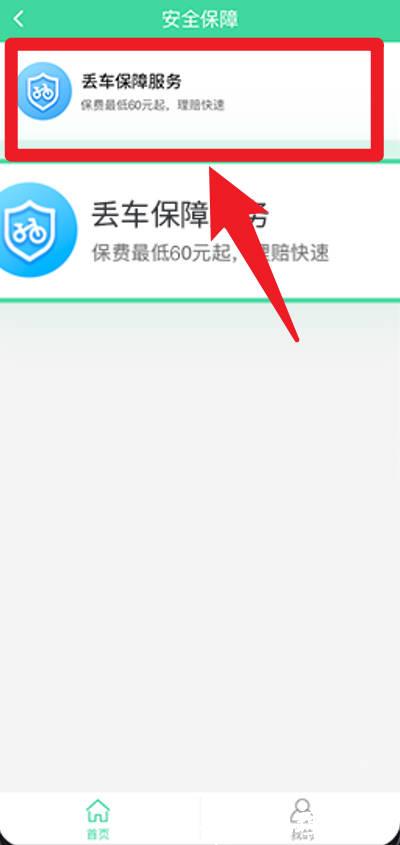 4、在安全保障栏目可以选择丢车保障服务,为骑行增加多一层安心保障。