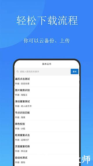 4、触控精灵内置脚本共享平台,支持导入导出标准化脚本文件。提供脚本加密功能,保护原创脚本的版权安全性。