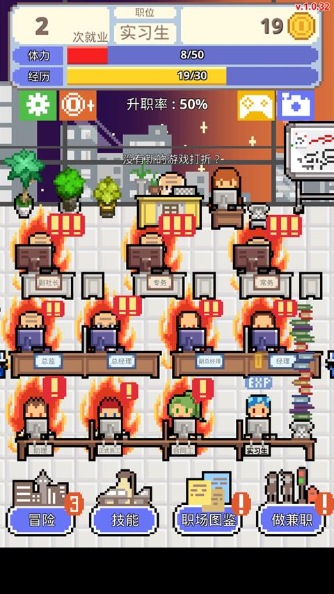 完成工作即可得到金钱和相应的经历 经历满后就会根据当前的升职率决定是升职还是保留当前职位 甚至是开除