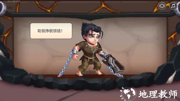 1、进入游戏后,在初始场景中找到锁链交互点,点击锁链即可帮助主角摆脱困境,开启冒险;