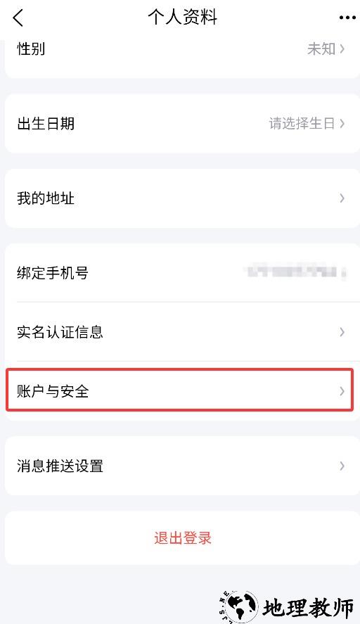 3、在个人资料界面下滑找到账户与安全选项,点击进入详细设置菜单。
