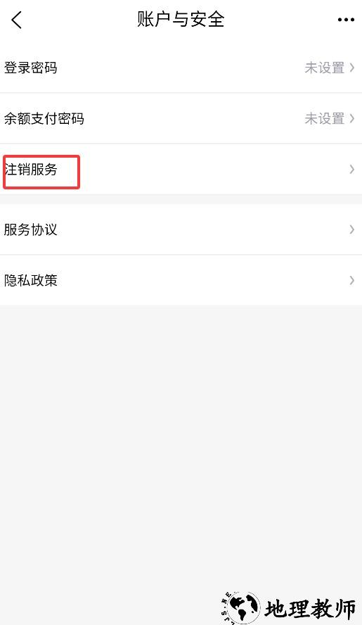 4、于账户安全页面选择注销服务,按指引完成身份验证即可注销账号。