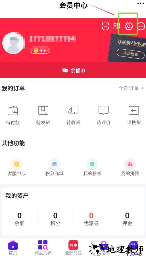 2、进入个人中心后点击右上角设置图标,跳转至账户管理相关页面。