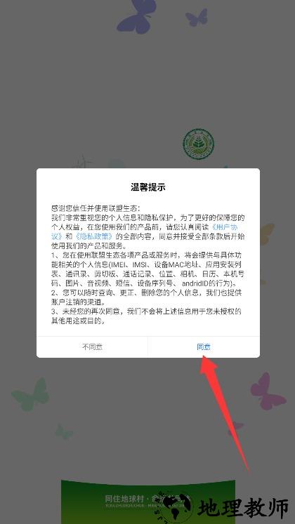 1、初次使用需阅读平台服务条款与隐私政策,确认后点击同意按钮进入登录界面。