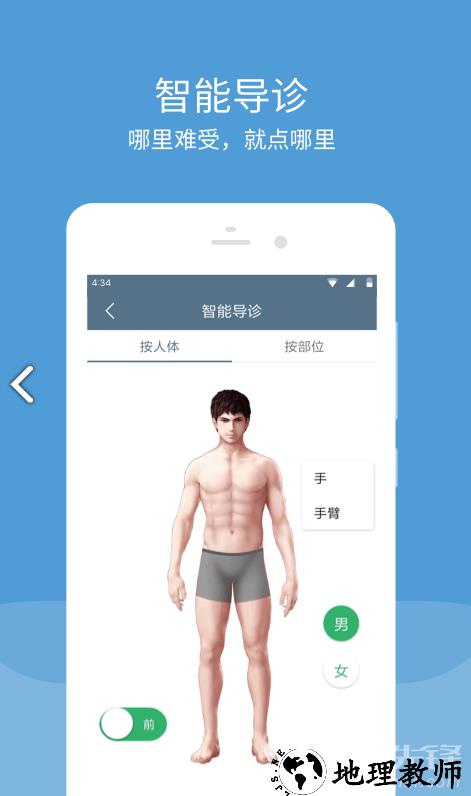 3. 智能导诊精准:根据症状可视化自诊,快速匹配对应科室,帮助用户准确找到就医方向。