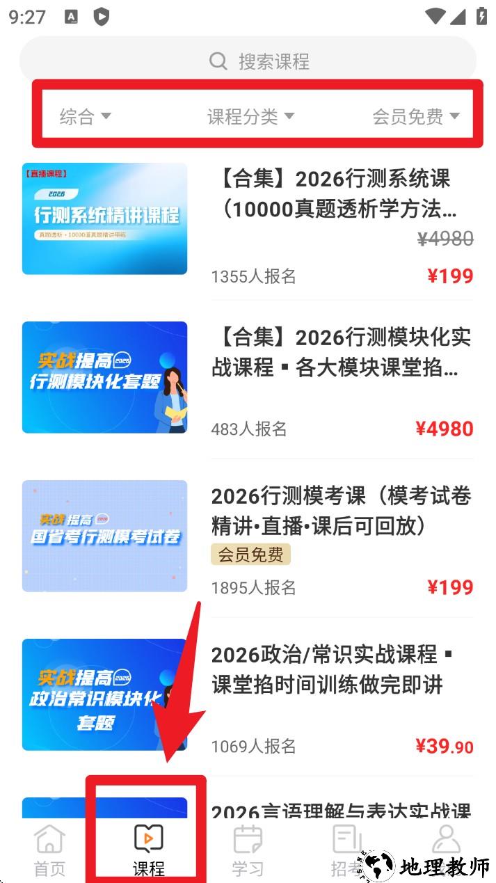 2. 点击下方课程栏目,通过筛选功能选择课程分类与会员免费,即可按需挑选适合自己的课程。