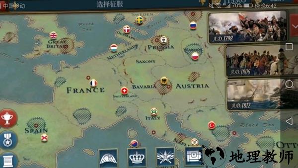 8、征服方面,目前有3个,1798,1806和1812(有美洲),分别对应着雾月政变,法兰西第一帝国成立,远征俄罗斯,有可能会更新别的征服地图。