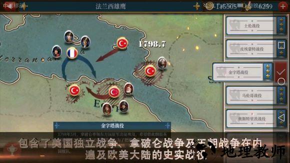 点开法国章节挑选战役,可以看到,战役有简单的进攻路线指导图以及主要将领(和前几作一致)。值得注意的是:关卡数量似乎被减少,第三关就是金子塔了,参考欧四,也许会减少部分关卡