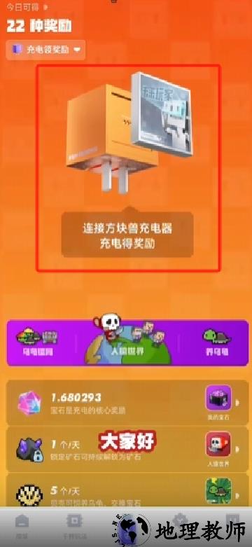 1、下载并打开潮玩方块兽充电器 app,连接对应的充电器后,即可开启挖宝石奖励的操作。