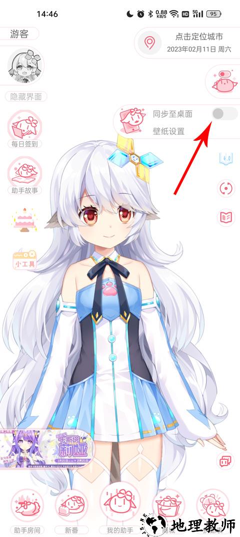 ④选择同步至桌面,助手可在系统桌面陪伴,可在设置中选择是否开启桌面助手语音。