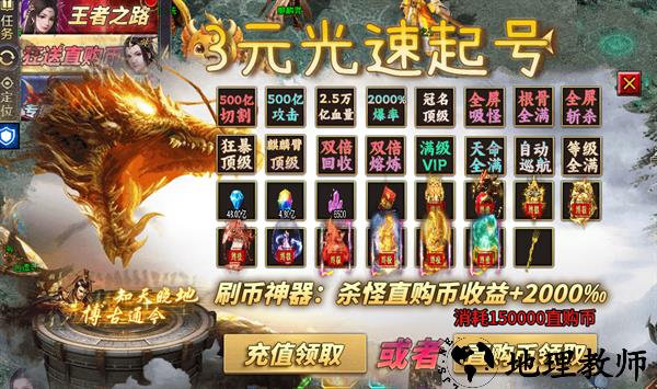 上线直升9999级免费领取自动回收 自动拾取 附带新手指南 助力快速上路,领完助力其他什么都不用管,跟随王者之路一路直冲 干就完事