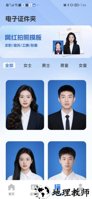 2、多样模板自由切换:涵盖考试、职业、网红等不同风格的证件照模板,满足不同场景使用需求。