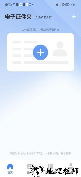 1、打开证件小助手 app,在主界面找到并点击 “+” 号按钮,开始添加电子证件。