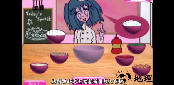 4、关键操作规则:要帮助莱西完成食材混合、美食制作的全流程,且必须严格把控时间,千万不能超时 ,一旦超时顾客会直接发怒,影响经营效果;