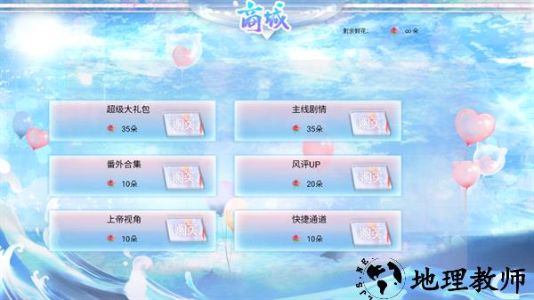 4、我们会发现实现了无限鲜花的效果,可以将一系列游戏道具进行购买操作,从而能够解锁完整游戏内容。