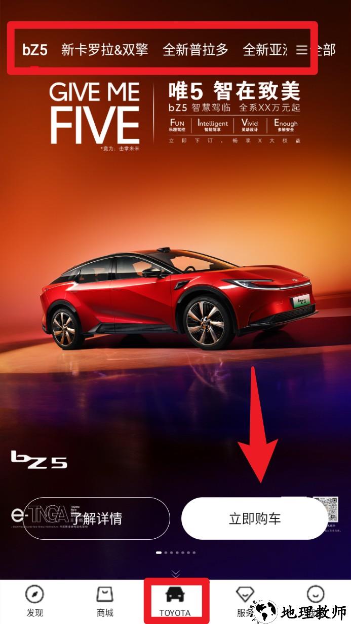 3. 点击底部的TOYOTA模块,可查看品牌旗下车型,支持快速跳转不同车系详情页并点击立即购车。