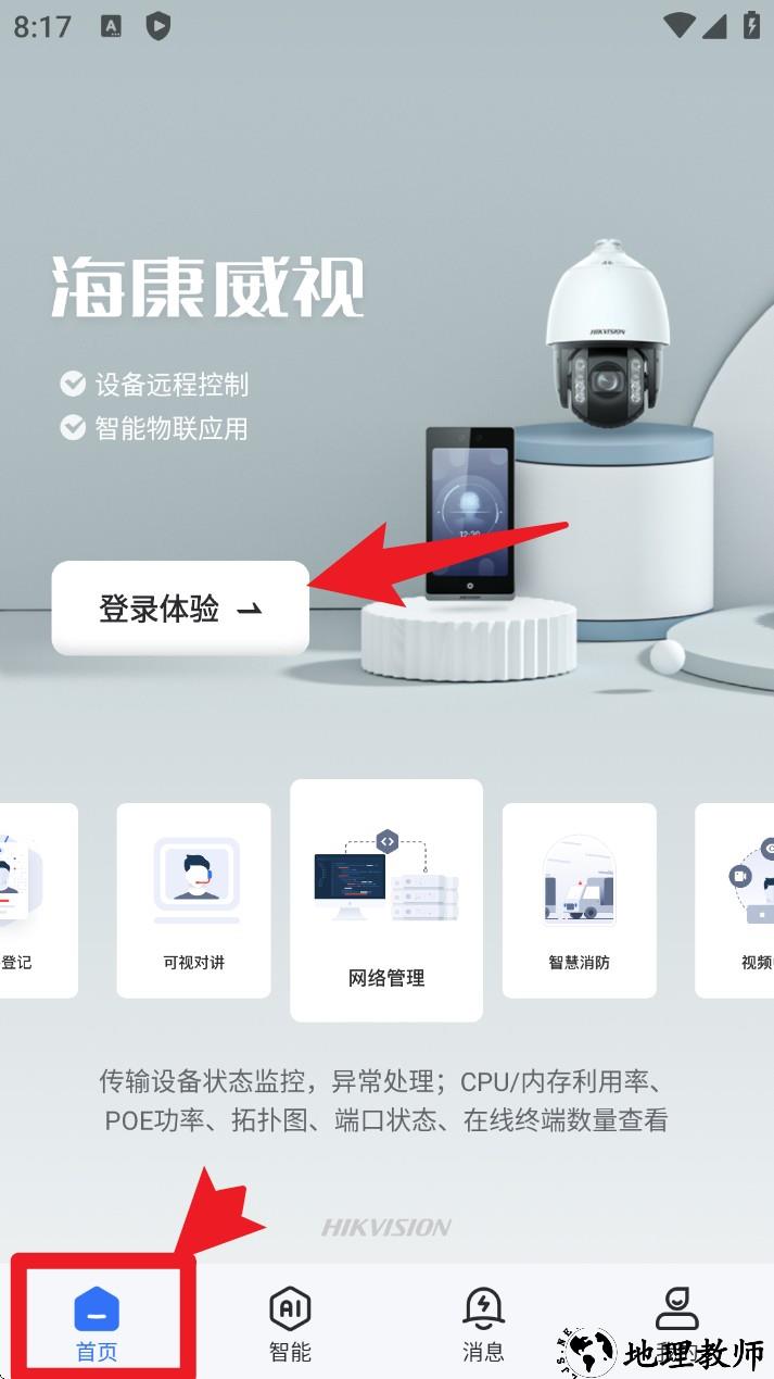 1. 打开App后默认进入首页,可点击中间的登录体验进入账号登录界面。