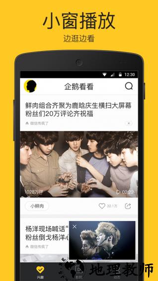 企鹅看看是腾讯科技有限公司官方推出的一款个性化视频应用,专为android用户设计。这款应用不仅汇聚了腾讯视频平台上丰富多样的短视频内容,还通过智能算法精准推荐用户可能感兴趣的视频,涵盖电影、电视剧(包括英美剧)、综艺、娱乐、动漫、新闻、体育、搞笑、音乐等多个领域。