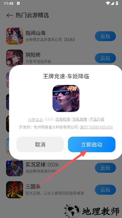 4、选中游戏后点击 “立即启动”,无需下载即可直接进入游戏体验。